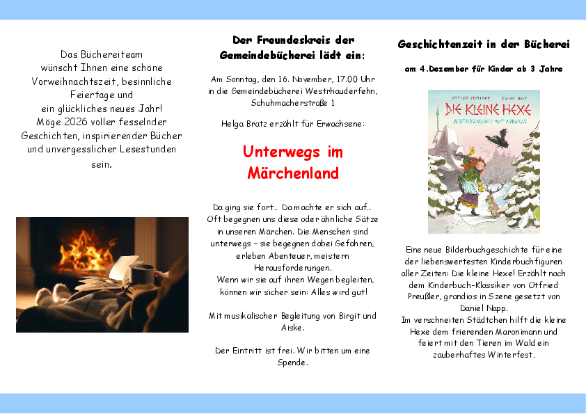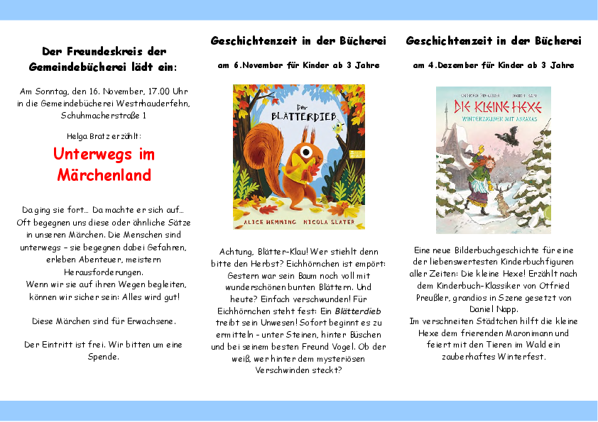 Den Veranstaltungskalender der Gemeindebüchereien können Sie hier ersehen.